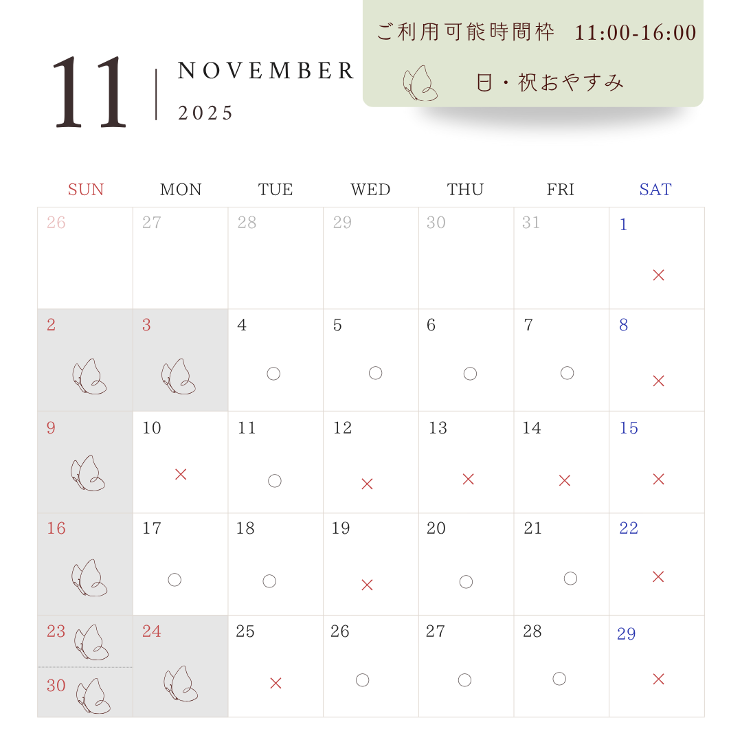 2025/11月ご予約可能日程